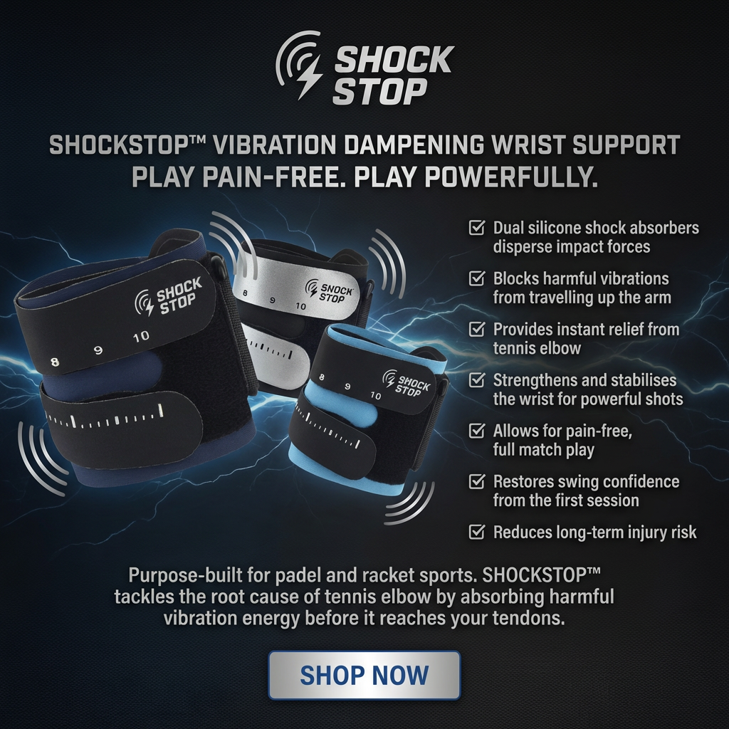 SHOCKSTOP™ Wrist Support is purpose-built for racket sports – especially padel, where impact forces are far more aggressive than most players realise. Unlike generic wrist or elbow braces, SHOCKSTOP™ tackles the root cause of tennis elbow: vibration energy travelling from the bat into the forearm tendons.